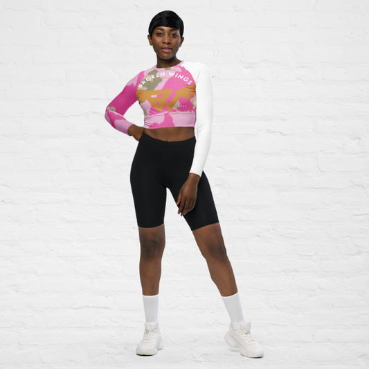 Pink & Green Camo KlassiQ long-sleeve crop top by BWFB